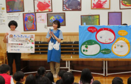 給食メニューのほうれん草とコーンのナムルは、自分たちが切ったことでいっそう美味しくいただけました。