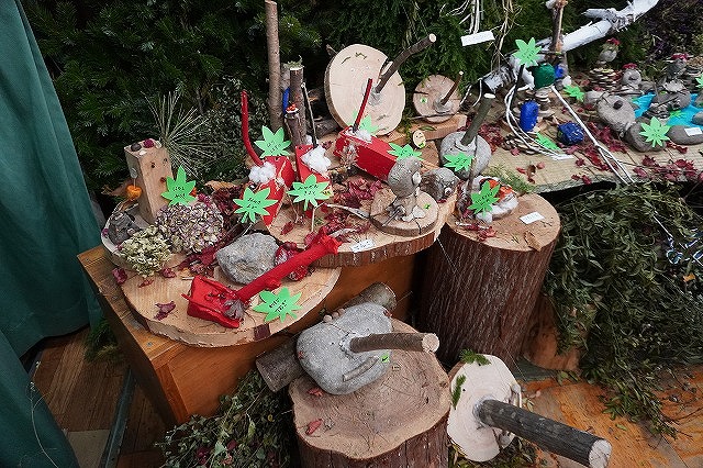 毎年 ゙木ぼっくり゙という名前で、虫や動物や人間を作っていましたが、今年はさらなる子どもの豊かな創造や表現を願って、木や木の実だけに限らず石や粘土、絵具など様々な材料も取り入れて作品作りに取り組みました。