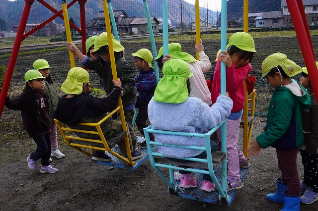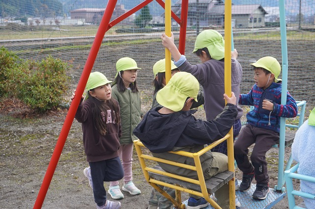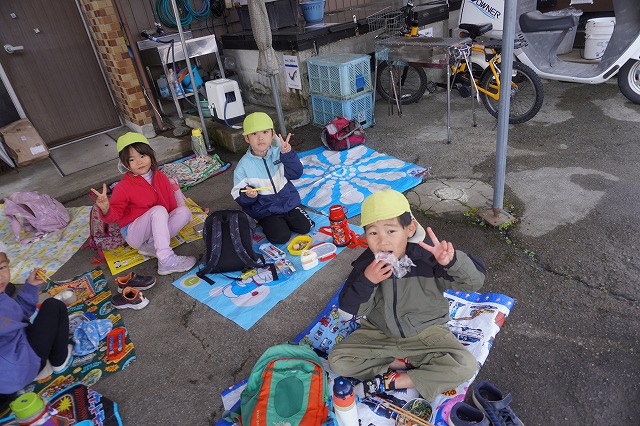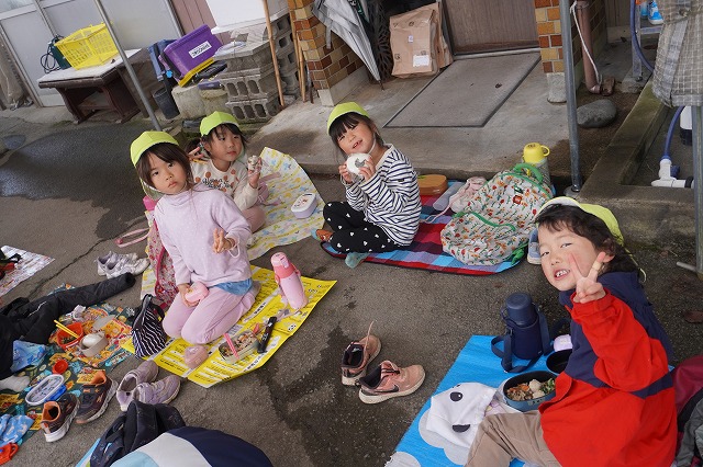 お弁当箱に給食を詰めてもらい、途中近くの公民館の遊具で遊んだり、園バスでの移動距離も長かったですが、みんな笑顔いっぱいで楽しむことができました。