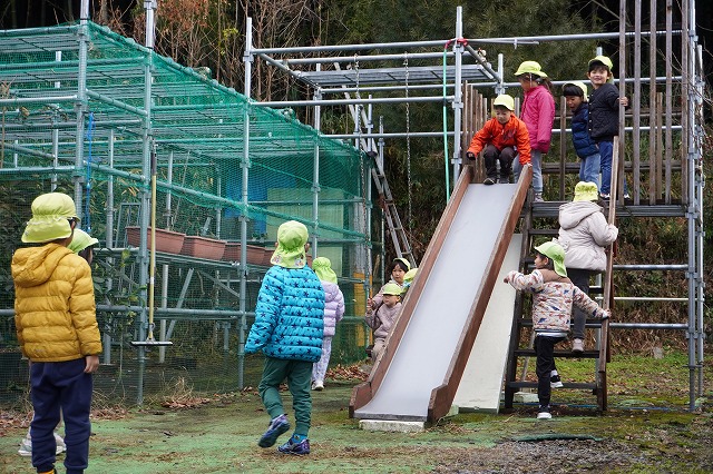 八幡町では、愛宕公園でお弁当を食べて、八幡の城下町を散策し、日吉神社にも寄ってお参りもしたり、風が冷たく寒い一日でしたが、いろいろなところに寄り道もできて、友だちがこんなに遠くから保育園に通っていることも知ることができました。