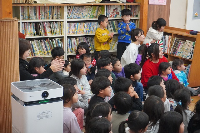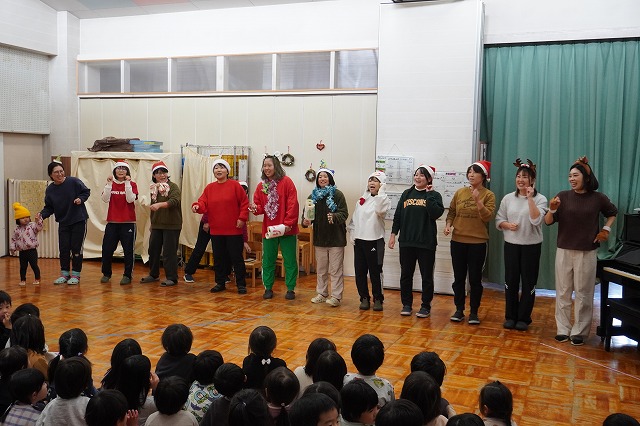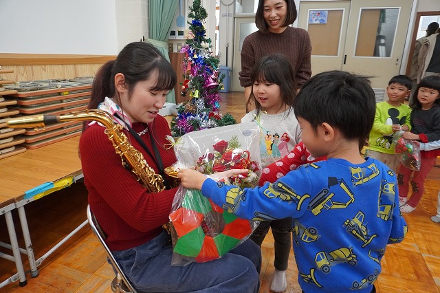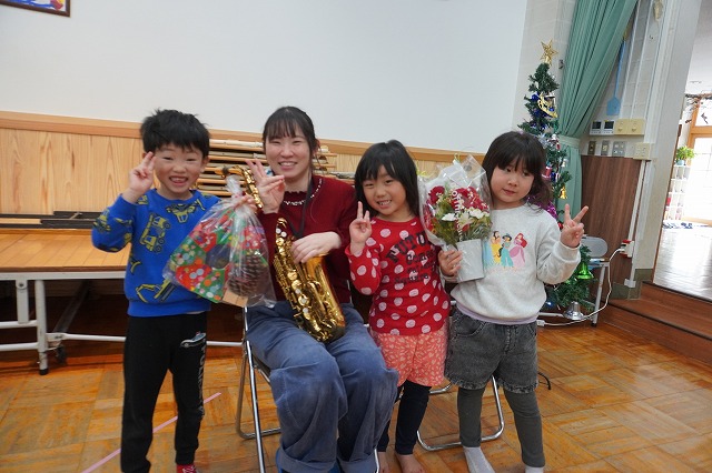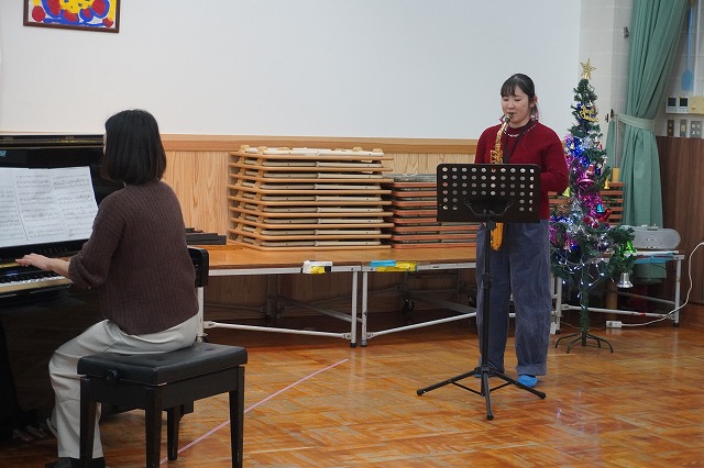 今年は保育士によるクリスマスソングの合唱と、アルトサックス(園児のお母さん)とピアノ(保育士)の生演奏でした。