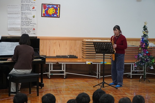 今年は保育士によるクリスマスソングの合唱と、アルトサックス(園児のお母さん)とピアノ(保育士)の生演奏でした。