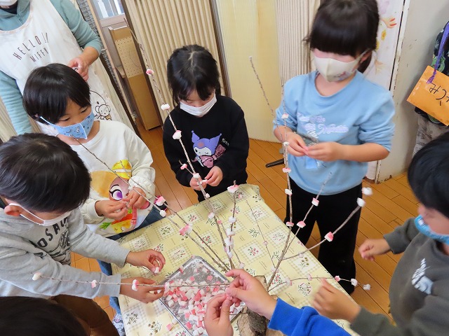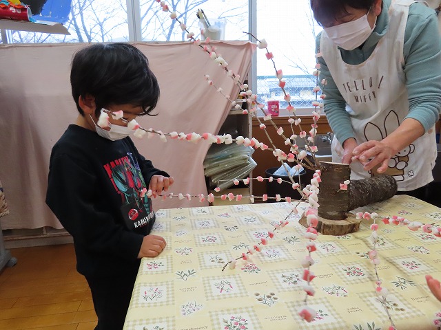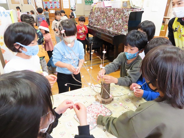 お鏡餅は、近所のボランティアさん3名が作ってくださり、餅花作りもしてお正月の準備もしっかりできました。
