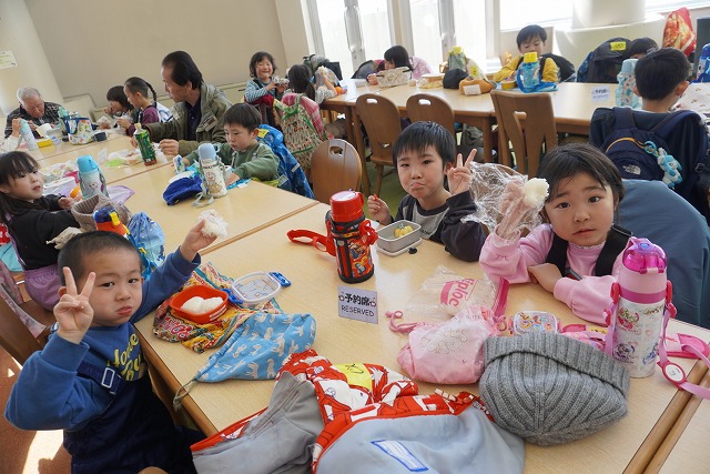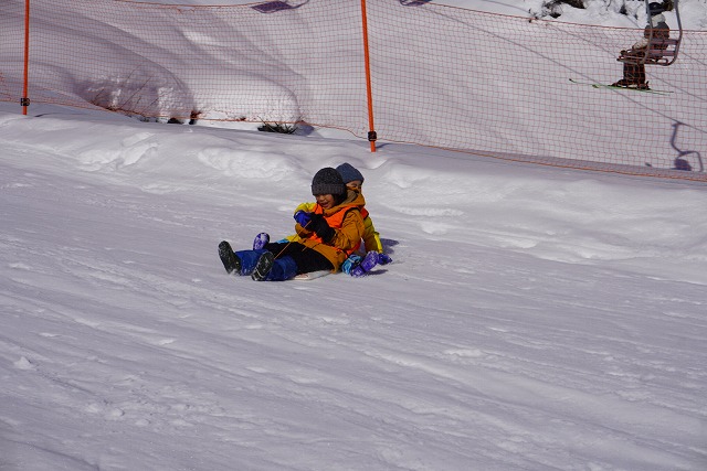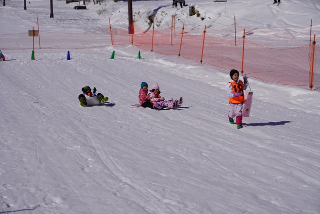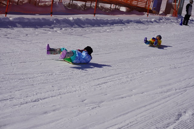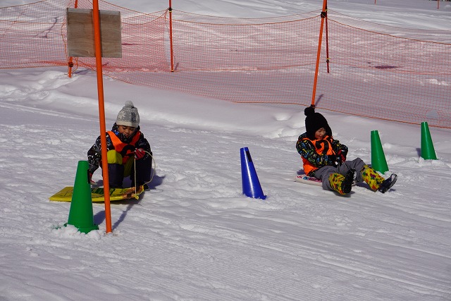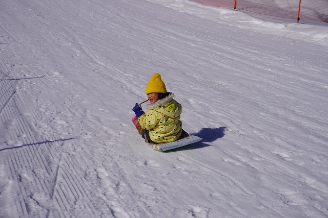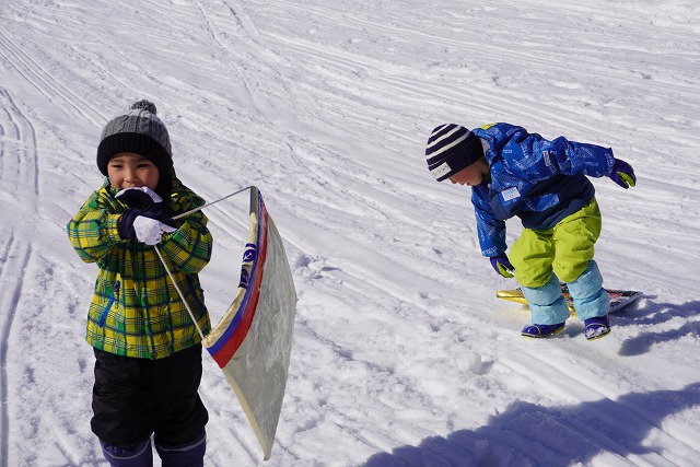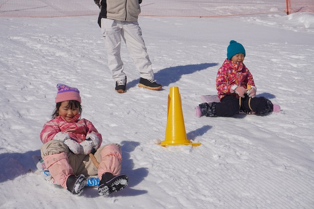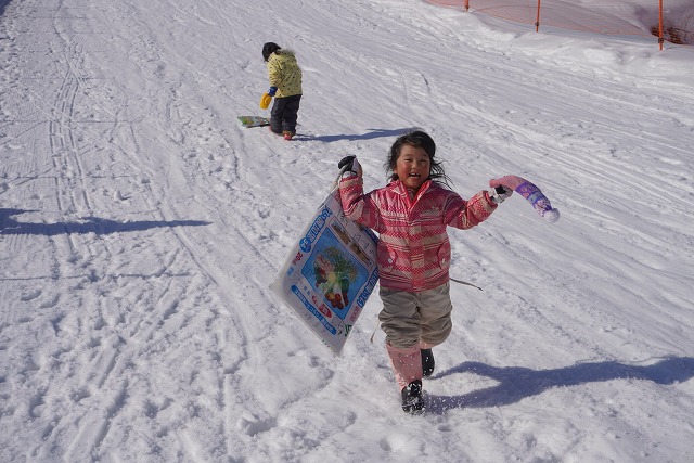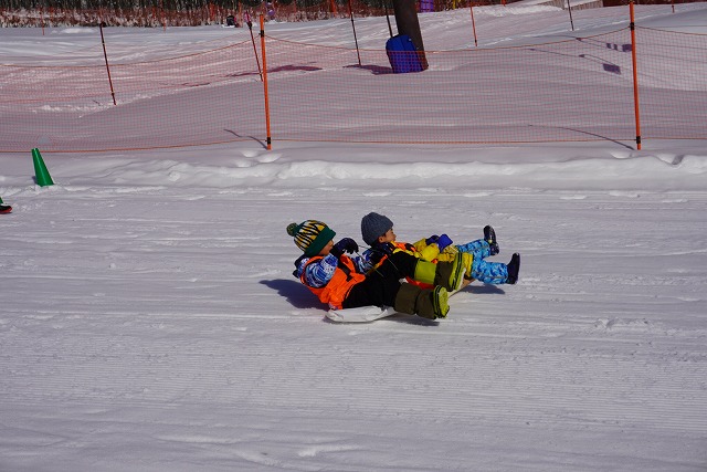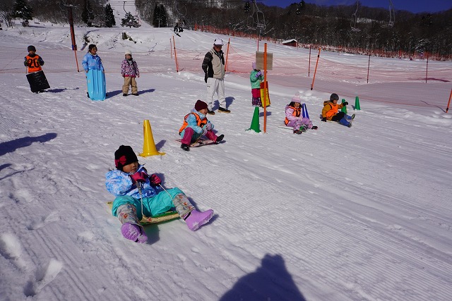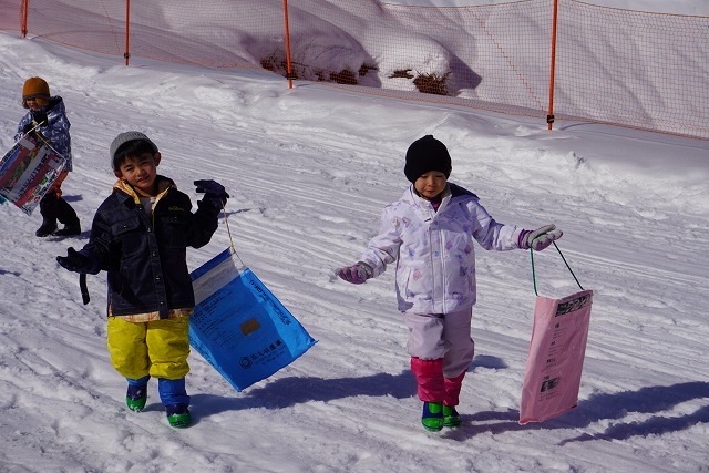 1月16日(金)、ゆり組がダイナランドスキー場にそり遊びに行ってきました。今年は昨年に比べて積雪が少なく、十分な雪遊びの経験ができていませんでした。そのため子どもたちはスキー場に着くと大喜び!この日は良い天気で、汗をいっぱいかきながらたくさん滑っておもいっきり楽しんでくることができました。よく滑った後の子どもたちはお腹がぺこぺこ。お昼ご飯のおにぎりとフルーツはとっても美味しかったです。
